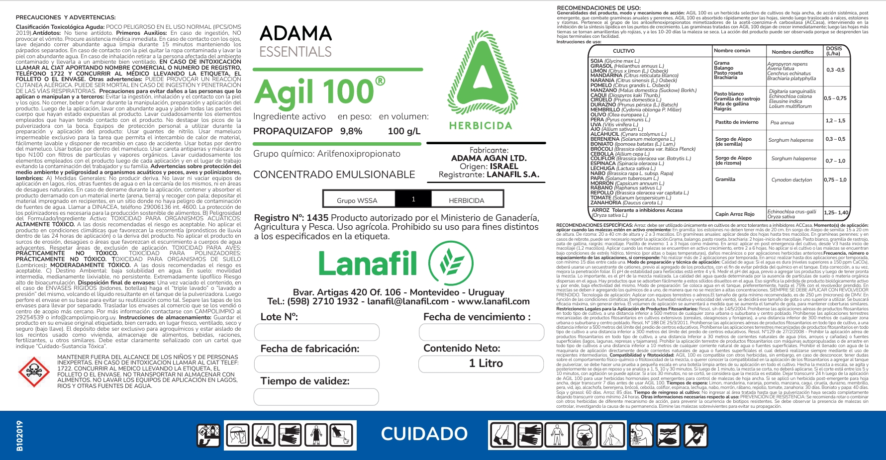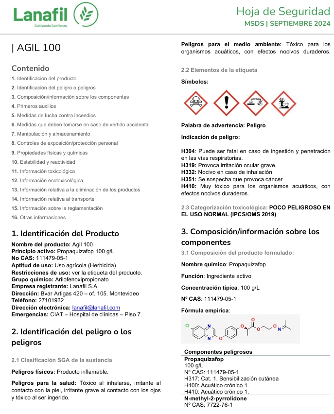 AGIL 100 es un herbicida selectivo de cultivos de hoja ancha, de acción sistémica, post-emergente, que combate gramíneas anuales y perennes.