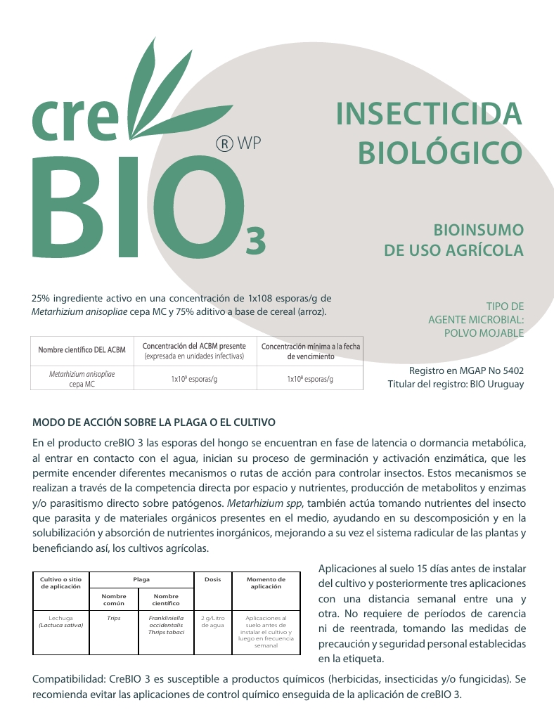 Insecticida biológico para el control de trips y picudo rojo, con efecto promotor del crecimiento y la salud de las plantas. Desarrollado en base a: Metarhizium anisopliae.