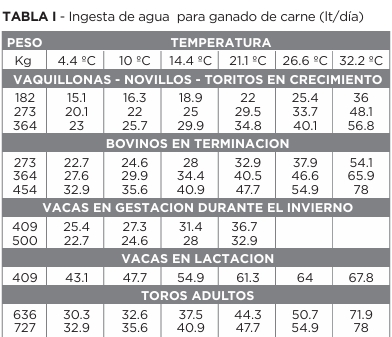 En la siguiente tabla se orienta el consumo de agua en litros por día, de acuerdo a la categoría zootécnica,