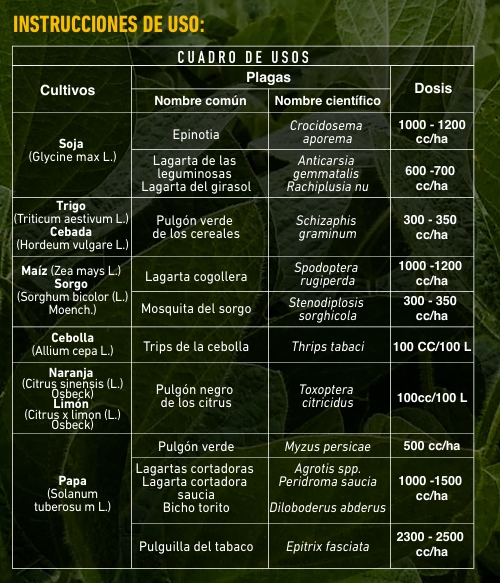CLORPIRIFOS TAFIREL es un insecticida fosforado que actúa por contacto, ingestión e inhalación. Posee poder de penetración en los tejidos vegetales y un poder residual que oscila entre 15 y 20 días según plaga y condiciones climáticas.