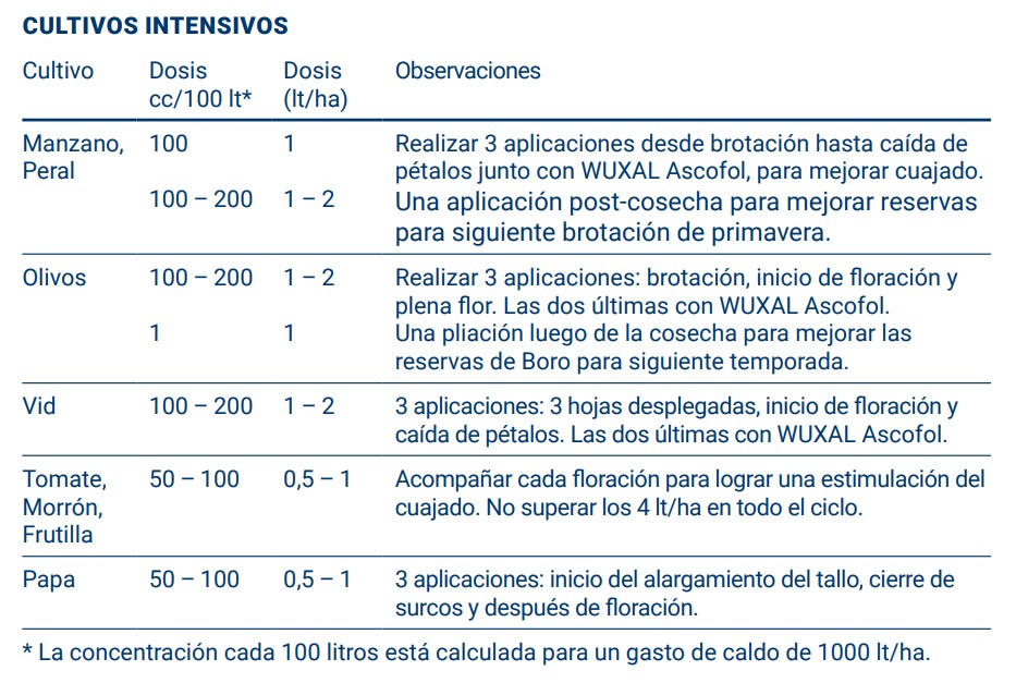 FORMA DE APLICACIÓN: WUXAL Boro puede ser aplicado con cualquier equipo de aspersión así sea mochila pulverizadora atomizadora. Puede aplicarse en combinación con pesticidas en general. Puede ser aplicado mediante equipos de fertirriego.