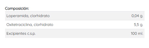 Descripción: Solución inyectable antidiarreica de Loperamida y Oxitetraciclina.