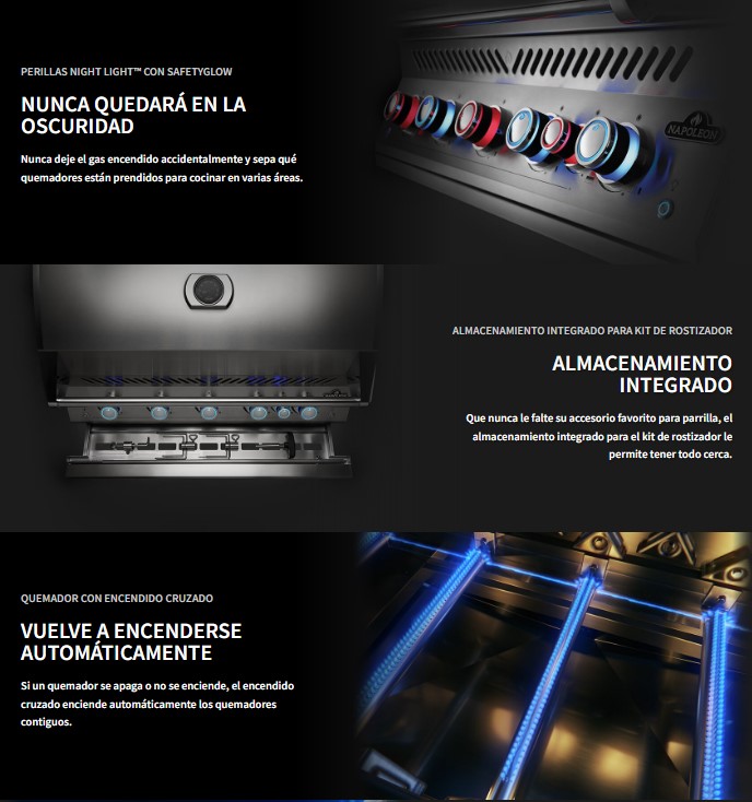 | · Las marcas perfectas de la parrilla son una insignia de honor. · El corte fino en el filete para ver la cocción justa es un sacrilegio. · Usted sabe cuándo y para qué elige condimentos, marinada o salsa. Napoleon lleva el arte de asar al nivel más alto. Cada función y cada material están diseñados para brindar el máximo rendimiento, para que usted pueda crear comidas inolvidables y momentos memorables. Y, al igual que usted, no somos novatos en la parrilla. Napoleon es una empresa familiar con más de 20 años de experiencia en fabricación de parrillas. Toda comida deliciosa nace de los mejores ingredientes. Elabore su comida con la mejor parrilla del mercado, la Napoleon. |
