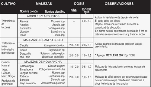 · Es un herbicida sistémico, selectivo y post emergente, utilizado para el control de árboles, arbustos y malezas de campo sucio, en montes invasores, renovales o campo natural.